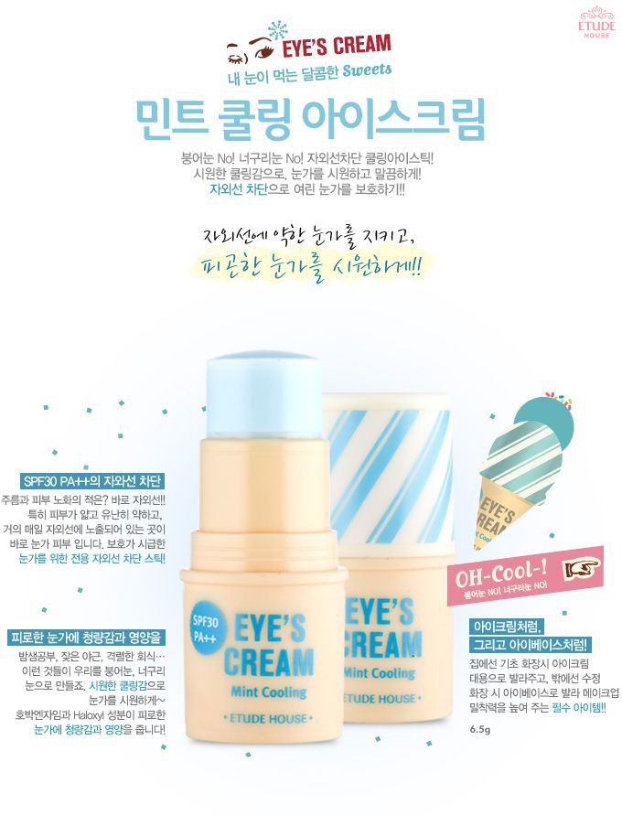 – Eye’s cream etude house stick còn có ưu điểm như một lớp kem lót riêng biệt cho vùng da mắt khi trang điểm; với thiết kế dạng thỏi như son dưỡng môi Eye’s cream etude house stick không gây kích ứng da; thư thái, thỏa mái là cảm giác mà bạn sẽ cảm nhận được sau lần sử dụng đầu tiên.